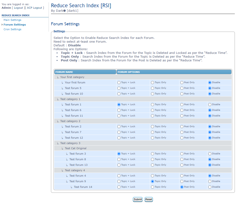 Topic + Lock/Topic Only/Post Only/Disablefor each Forum.Topic + Lock: Search Index from the Forum for the Topic is Deleted and Locked as per the above Time.Topic Only: Search Index from the Forum for the Topic is Deleted as per the above Time.Post Only: Search Index from the Forum for the Post is Deleted as per the above Time.