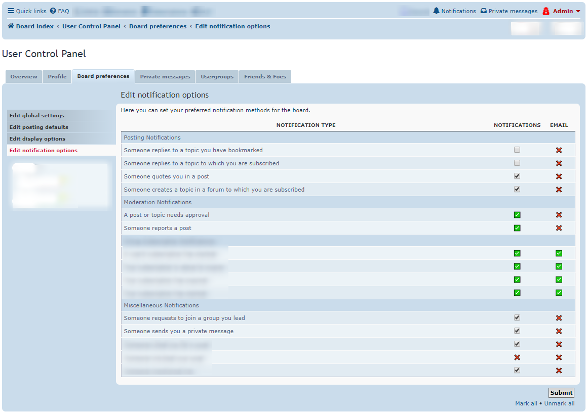 phpBB Customisation Database Extension : User Notification Control